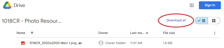 3. Download All: In the top right corner of the Google Drive page, click the 'Download All' button.